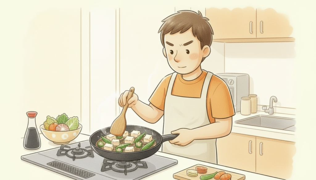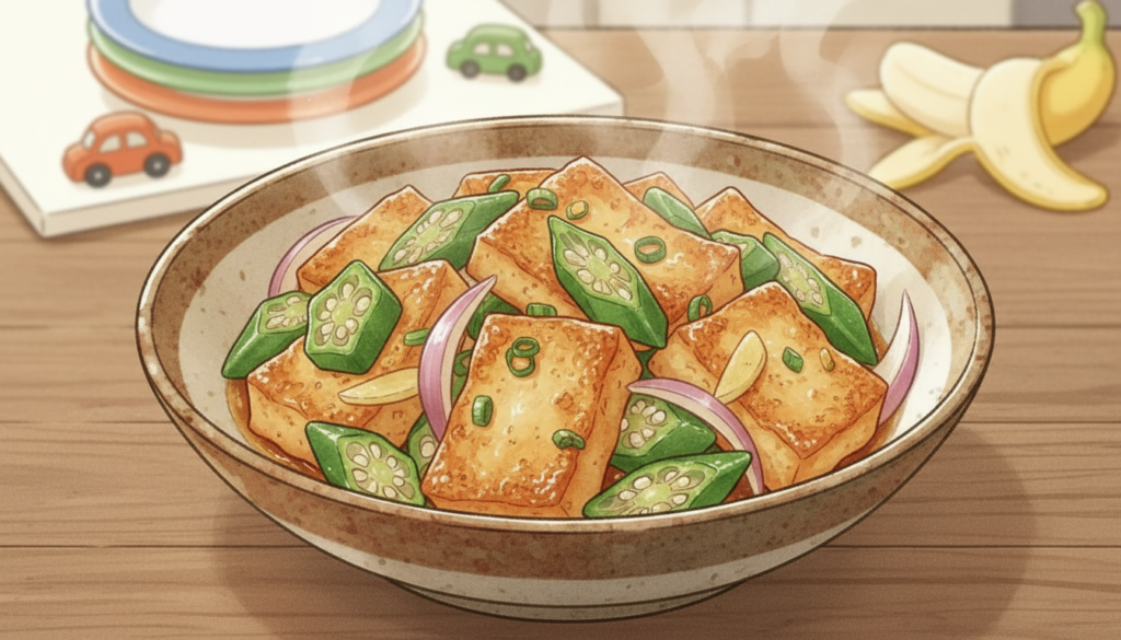 【1歳夜ご飯簡単レシピ】料理初心者パパが挑戦!厚揚げとオクラの炒め物で気づいた「家族ごはん」の大切さ