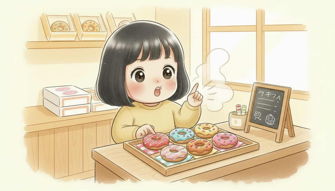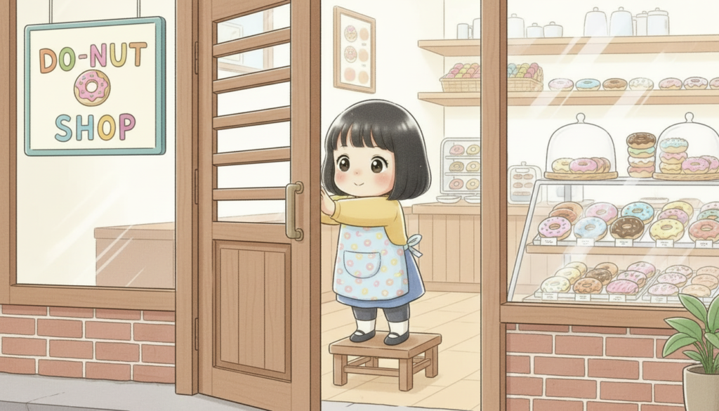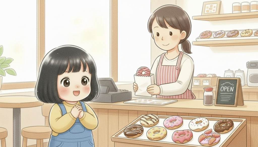 我が家のドーナッツ屋さんには、決まった流れがあります。