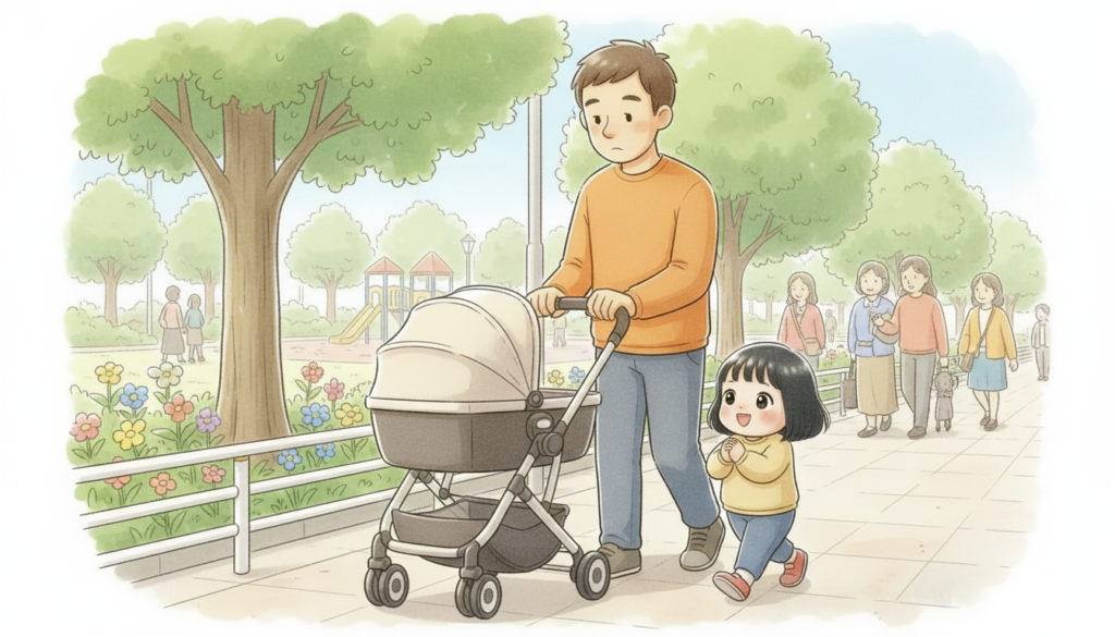 - ベビーカーを一緒に押す