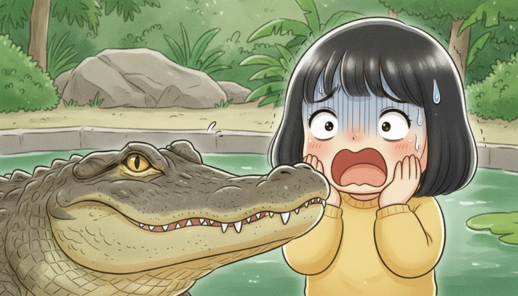 ワニの展示を見た瞬間に少し後ろに下がり、そのまま離れていきました。