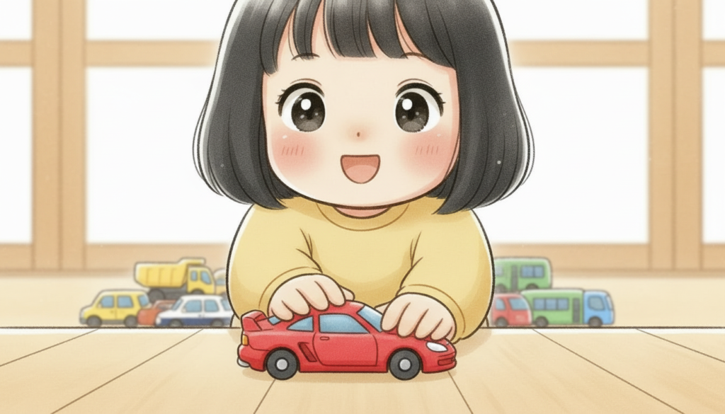 娘はトミカの箱を見て大興奮